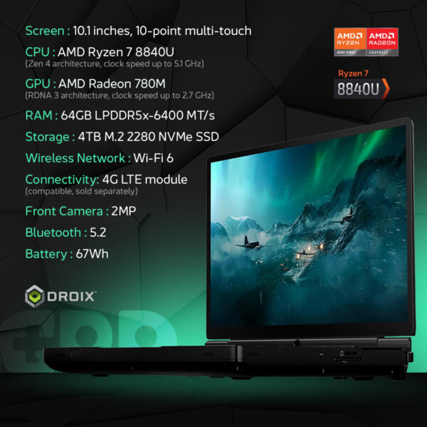 Performance: At the heart of the GPD WIN MAX 2 2024 Handheld PC lies the potent AMD Ryzen 7 8840U processor, reaching up to 5.1GHz across 8 cores and 16 threads. Teamed with the AMD Radeon 780M GPU, this device ensures smooth, lag-free experiences, whether you’re crunching numbers or battling virtual foes. The addition of an OcuLink port elevates its capabilities, enabling connection to the GPD G1 (2024) eGPU docking station for even greater graphics prowess.