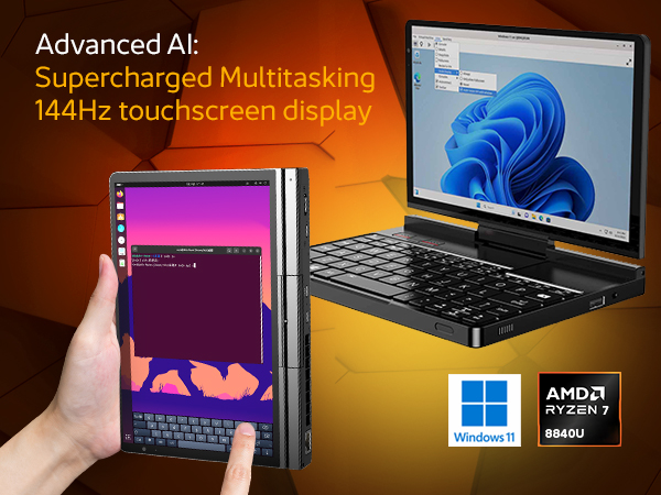 La GPD Pocket 4 tiene un diseño elegante y compacto, que la convierte en una potencia portátil sin renunciar a la calidad visual. Su pantalla LTPS de 8,8 pulgadas, con una impresionante resolución de 2560 x 1600 píxeles, ofrece imágenes nítidas con una densidad de píxeles de 343 PPI. Tanto si juegas como si te dedicas a la creación profesional de contenidos, la frecuencia de refresco de 144 Hz garantiza unas imágenes suaves como la mantequilla. El brillo máximo de la pantalla de 500 nits y la cobertura del 97% de la gama de colores DCI-P3 garantizan unos colores vibrantes y precisos, perfectos para cualquier entorno, desde espacios de trabajo poco iluminados hasta luminosos exteriores. Además de su versatilidad, la innovadora pantalla giratoria permite a los usuarios cambiar sin esfuerzo entre los modos portátil y tableta, adaptándose a tus necesidades sobre la marcha. El GPD Pocket 4 está diseñado no sólo para rendir, sino para impresionar con su pantalla de alta gama y su diseño adaptable.